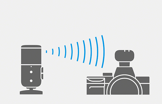 Bluetooth 5.3(Bluetooth Low Energy)とLC3plus(*1)コーデックを採用することで、低消費電力、低遅延、高音質を実現しています。見通しの良い場所であれば、レシーバーとマイクロホンの間で最長150m(*2)まで通信可能。また、省電力化により十分な稼働時間を確保しながらのバッテリーの小型化も可能となり、マイクロホン・レシーバーそれぞれの小型・軽量化に貢献しています。また、ワイヤレスにより、カメラ、PCやスマートフォンなどと離してマイクロホンを設置できるため、例えば屋外でのトーク配信や楽器の弾き語りの収録での自由度が向上します。