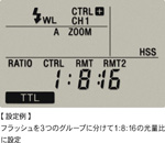 フラッシュを最大3つのグループ(*)に分けて、任意の光量比を設定するだけで、発光量を自動調整。深い知識や経験を必要とする多灯光量比制御撮影が手軽に楽しめます。