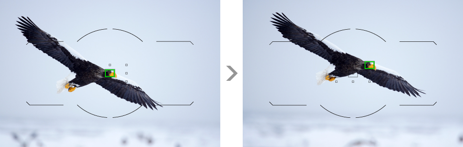 フォーカスエリアを「ローカル」にしてピンポイントで被写体を狙った場合、選択したフォーカスポイントから被写体が一時的に外れてしまっても、その周辺のフォーカスポイント8点に自動で切り替わり、被写体を面で捉えて再びピントを合わせます。