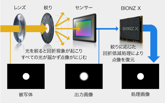 画像処理エンジン「BIONZ X(ビオンズ エックス)」では、細部の質感描写が大幅に進化。信号処理プロセスにおけるディテールリプロダクション技術により、デジタル特有の輪郭強調を抑え、高い解像感による自然な立体感を再現。究極のリアリティーを追求しています。