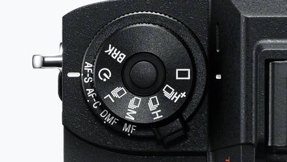 ドライブモードダイヤルとフォーカスモードダイヤルを上下二段で独立装備。単写や連写などのドライブモード、シングルAFやコンティニュアスAFなどのフォーカスモードを、メニュー上でのボタン操作を必要とせず、即時に個別のダイヤルで切り換えることができます。双方のダイヤルにロック機構が付いているため、撮影中の不用意なモード変更を防止し、確実な1ダイヤルのみの操作を実現。α1ではより優れた操作性を追求し、フォーカスモードダイヤルのロック機構をモニター側に移動し、不容易な誤操作を防ぐ設計にしています。