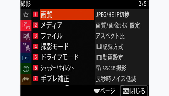 プロフォトグラファー、ビデオグラファーなどの要望を反映し、α7S IIIで一新されたメニュー構成を採用しました。