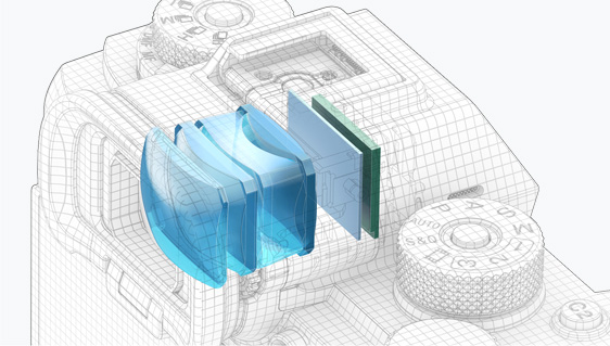 α7R IV比で約1.6倍、人間の眼の分解能に匹敵するクラス最高解像度(*1)の新開発約944万ドット(QXGA)のOLEDデバイスを採用。高コントラストと高い色再現性を兼ね備えています。世界最大(*1)のファインダー倍率0.90倍(*2)とファインダー内全表示域のすみずみまでクリアに見渡せる約41度の視野角を達成した一方で、視度調整機構を含む設計見直しにより、α7R IV比で2mm長い25mmのアイポイント(*3)を実現しつつ極力サイズの増加を抑えた設計です。加えて、ファインダー画面内での注視点の移動に伴う歪みの原因となる収差を低減した独自の光学設計手法により、画質の安定性を向上。快適なファインダー撮影を可能にします。