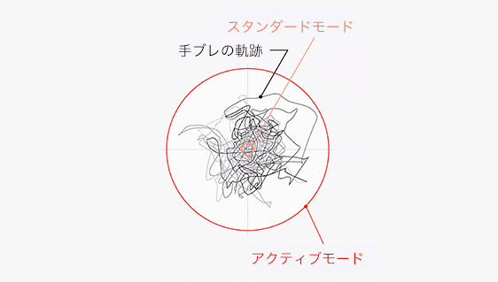 *1 アクティブモードでは撮影画角が少し狭くなります。記録方式がXAVC HS 8Kのときや動画120p 、S&Qモードの120pでの撮影時、アクティブモードは無効になります