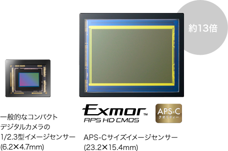 イメージセンサーのサイズが大きいほど高画質になり、背景もぼかしやすくなります。α5000には、一般的なデジタル一眼カメラと同じ大きなイメージセンサーをそのまま搭載しているので、背景をふわっとぼかして、被写体が引き立つような写真をかんたんに撮影できます。