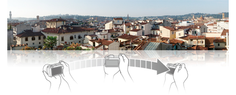 シャッターボタンを押してカメラをひと振りするだけで、パノラマ写真を撮影できます。カメラが自動的に連続撮影した画像を、カメラ内で1枚の画像に自動で合成します。これまで画面に収まりきらなかった広大な風景や構造物を、簡単にパノラマ写真にできます。