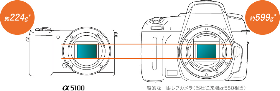 α5100の小さなボディには、一般的な一眼レフカメラと同じAPS-Cサイズの有効約2430万画素「Exmor(エクスモア)」CMOSセンサーを搭載。カメラのセンサーは、サイズが大きければ大きいほど発色が鮮やかで、背景もぼかしやすくなるので、子どもの写真を撮るときも、背景をふんわりぼかして表情を際立たせた印象的な写真を撮影できます。α5100なら、日々成長する子どもの姿など、家族にとってかけがえのない瞬間を本物の一眼画質で残せます。