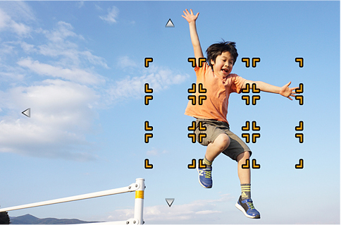 α5100は、179点像面位相差AFセンサーを採用。一般的な一眼レフカメラと比べてAFの反応するエリアが広く、画面のほぼ全域をカバー。画面の端にいる子どもにも、かんたんにピントを合わせて、撮りたい構図のまますぐに撮影できます。また、動きのある被写体への追随性も高く、さまざまなシーンで位相差AFによる高速AFが可能です。