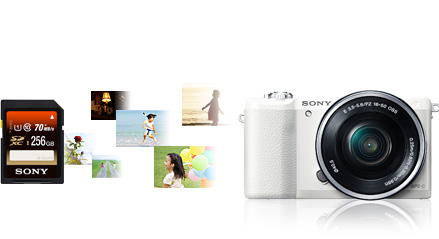 α5100の高速レスポンスを引き出すなら、ソニーの高速SDHC/SDXCメモリーカード「SF-UY2シリーズ」がおすすめ。UHS-I規格に対応し、高速連写時にもストレスのない高速書き込みを実現。パソコンへの大容量データの高速転送も可能で、効率的な作品づくりをサポートします。
