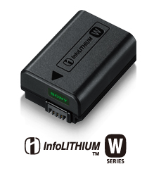 CMOSセンサーの省電力化により、1回の充電で静止画を最大約400枚(*1)、動画を約110分(*2)まで撮影可能。また、インフォリチウム機能付きの小型Wシリーズバッテリーで、画面上にバッテリー残量を1%刻みで表示します。