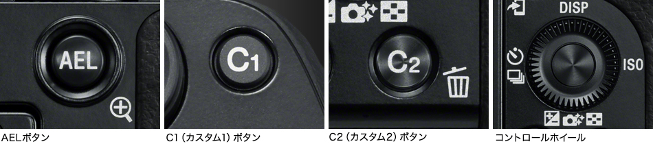 撮影者の操作やこだわりに応えるカスタマイズ機能が充実。2つのカスタムボタンをはじめ、AELボタン、ISOボタン、上下左右ボタンなどを含め、使用状況や好みに合わせて機能を自由に割り当てられるボタンを7個搭載(*)。43項目の機能からそれぞれ登録でき、よく使う機能を瞬時に呼び出せます。