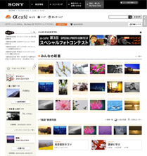 αで撮った写真を投稿したり、みんなの作品にコメントを書きこんだり。αユーザーの作品を通して、αユーザー同士でコミュニケーションが楽しめるWEBサイトαcafe。αユーザーはもちろん、ご購入を検討されている方も作品やコメントの閲覧が可能です。