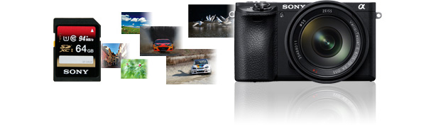 α6500のレスポンスを引き出すなら、ソニーの高速SDHC/SDXCメモリーカード「SF-UXシリーズ」がおすすめ。UHS-I規格に対応し、高速連写時にもストレスのない高速書き込みを実現。パソコンへの大容量データの高速転送も可能で、効率的な作品づくりをサポートします。
