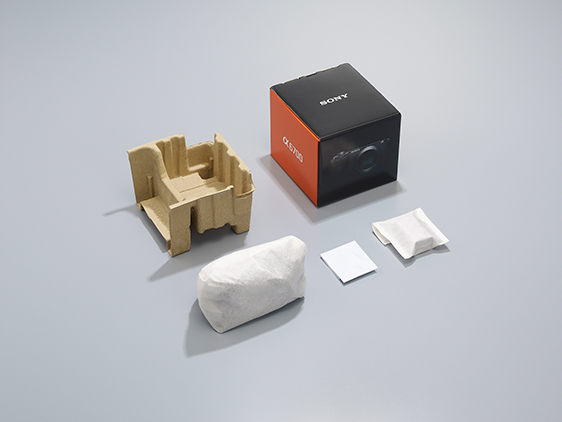高い緩衝性を維持しながら、包装材の脱プラスチック化(*1)を進めています。商品等を包む袋に、植物由来の不織布(*2)や紙製の袋を採用し、梱包時に使用されるプラスチックを削減することで、環境負荷を軽減しています。