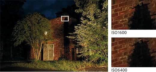 独自の「オンチップ・カラムAD変換」方式を採用し、センサーチップ内でADコンバーターが一括変換を行い、ノイズの発生を抑えつつデータを高速転送。さらに、アナログ段階とデジタル変換後の2回、ノイズ成分の除去を行う「デュアルノイズリダクション回路」の搭載により、高感度撮影時でも圧倒的な低ノイズを実現。常用ISO100-25600(拡張ISO50)の幅広い感度領域で、解像力と低ノイズを高いレベルで両立しました。さらに、高速連写した4枚の画像を合成して、設定したISO感度から最大約2段分のノイズ低減効果が得られる「マルチショットNR(ノイズリダクション)」機能を搭載。これにより最高ISO51200相当の高感度撮影を実現しました。