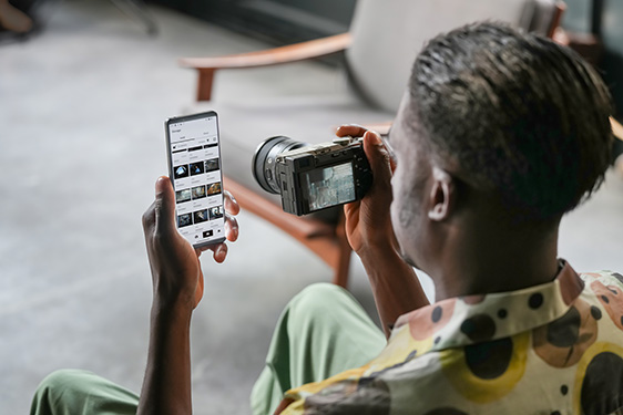 カメラからモバイルアプリケーション Creators' App への画像転送の安定性が大幅に向上しました。また、Creators' Appへの画像転送を開始した後は、画面の表示をオフにしてポケットにしまっている間も、他アプリに切り替えて別作業をしている間も転送が継続されるため(*1)、より快適に画像共有できます。