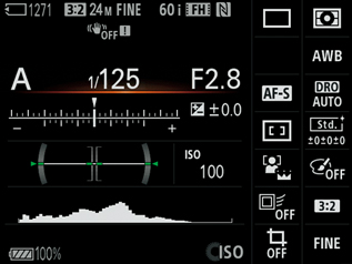α99で採用されている「クイックナビプロ」を搭載。カメラの設定用画面に遷移する必要がなく、Fnボタンを押せばダイレクトに項目の設定・変更ができるため、撮影中でもより迅速・確実に意図した設定値の選択が可能です。また、液晶画面で瞬時にパラメーターを確認できるだけでなく、前後の選択肢まで表示されるため、コントロールダイヤルですばやく直感的に操作できます。