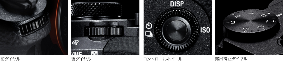 モードダイヤルやコントロールホイールはもちろん、前後2つのダイヤルと露出補正ダイヤルを搭載。グリップを握りながら操作しやすい場所に配置された各ダイヤルは、主要パラメーターを任意に割り合てることで瞬時に設定変更が可能。また、露出補正ダイヤルは-3EVから+3EVまで1/3ステップ毎に設定できるほか、±0設定時のみカスタムボタンに露出補正機能を割り当てることで-5EVから+5EVまでの設定も可能になり、撮影表現の幅を広げることができます。