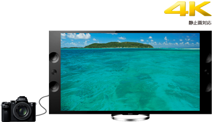 α7 IIはHDMIマイクロ端子を搭載しているので、HDMIケーブル(別売)でハイビジョン液晶テレビとつなげれば、フルハイビジョン動画をそのままの画質で鑑賞できます。さらに、フルハイビジョン(1920×1080画素)の4倍を越える約829万画素の4K(3840×2160画素)に対応したBRAVIAとHDMIまたはWi-Fiで接続すれば、フルサイズセンサーで捉えた美しい写真も解像感を損なうことなく大画面で鑑賞できます。