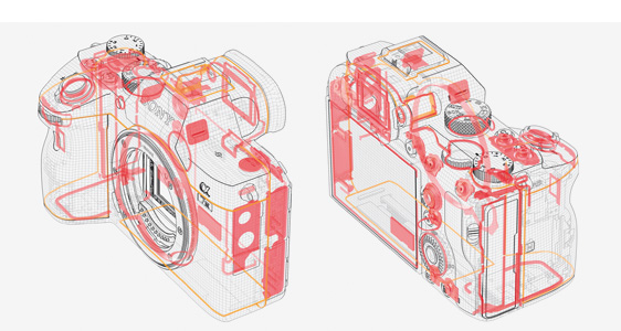 ボディ各所にシーリング処理を施し、部品のあわせ目を凹凸にすることで2重構造化。防塵・防滴に配慮した設計により、厳しい環境下での撮影を可能にします。