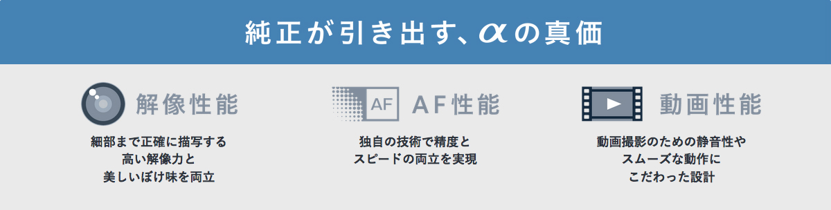 純正レンズは常に進化するフルサイズボディの能力を将来にわたり最大限に引き出せるように設計されており、α7 Vの進化した性能も最大限に引き出せます。超広角から超望遠まで幅広いラインアップをそろえ、テレコンバーターを使用してもα7 Vの高解像性能を損なうことがありません。