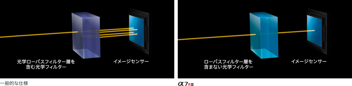 圧倒的な解像度とαレンズの高い光学性能を最大限に生かすために、α7R IIIでは光学ローパスフィルターレス仕様を選択。より高いレベルでわずかな解像度の低下も防止。また、イメージセンサー上にあるシールガラス両面に反射防止膜(ARコート)を採用し、光の反射を抑えることでゴーストやフレアの発生を最小限に抑えています。35mmフルサイズセンサーの高解像度性能を損なわないように光学的に配慮された設計により、今までにない解像感で被写体の細部や質感までを再現できます。