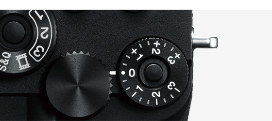 露出補正ダイヤルのセンターに「露出補正ダイヤルロック解除ボタン」を追加。ボタンを押すたびにダイヤルロック/ロック解除が切り換わります。押し下げている間はダイヤルが不用意に回転しないようロックされます。撮影者の好みに合わせた使い方が選べます。