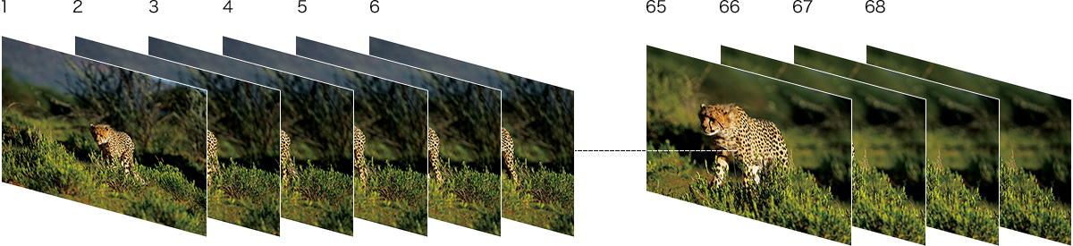 * 連続撮影モード「Hi+」時に最高約10コマ/秒、連続撮影モード「Hi」時に最高約8コマ/秒の高速連写が可能です。撮影設定によって最高連写速度が異なります