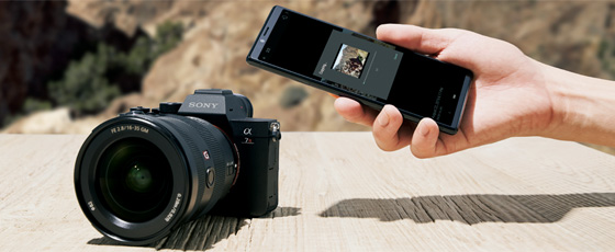 モバイル端末を用いたデータ転送機能がさらに便利になりました。あらかじめ設定しておくことで(*)、カメラの電源がOFFになっていても、カメラ内のSDカードに保存されている撮影画像をWi-Fi転送できます。モバイル端末にインストールした「Imaging Edge Mobile」アプリでカメラとBluetoothでペアリングしたのち、アプリを操作し、必要な画像を選択します。