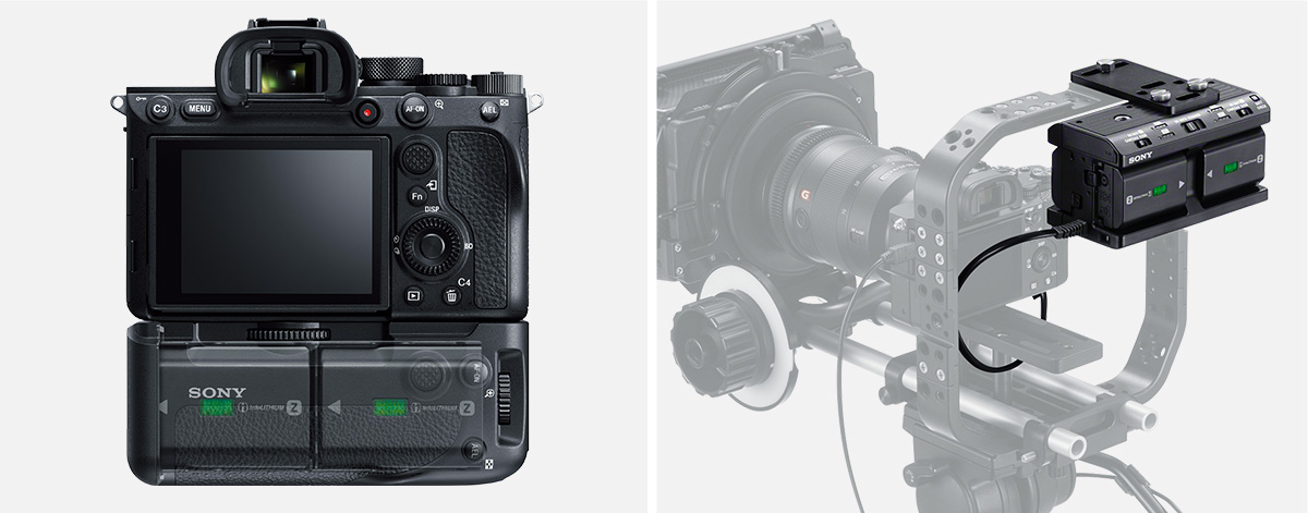高容量のZバッテリーを採用。省電力に配慮した回路設計でイメージセンサーやファインダーを高解像化しながらも、1回の充電で約660枚(*)まで撮影でき、従来機と同等レベルの性能を維持しています。また、バッテリーを2個まで装着できる縦位置グリップ「VG-C4EM(別売)」や、最大4個のバッテリーを収納できるマルチバッテリーアダプターキット「NPA-MQZ1K(別売)」にも対応し、長時間撮影をしっかりサポートします。