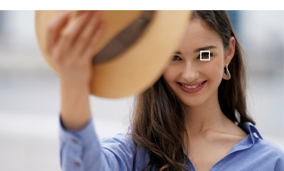 動画撮影中も人物の瞳を認識し、追随することが可能になりました。高い精度で自動的に瞳にピントを合わせ続けるため、撮影時に構図に集中できます。静止画同様にリアルタイムトラッキング技術との併用により、画面内の任意の場所にいる人物を自動追尾し、瞳を認識すればリアルタイム瞳AFでの追随が可能です。動画撮影中 「AF時の顔/瞳優先」が「入」の時に自動的に瞳を追随し、「顔/瞳枠表示」を「入」にしておくと、追随している瞳に白色の瞳枠が表示されます。また、動画でも「タッチトラッキング」や瞳の「左右選択」にも対応しています。