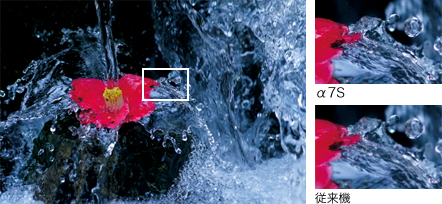 撮影の幅と表現領域を格段に広げるデジタル一眼カメラ、α7S。新たに有効約1220万画素 35mmフルサイズ「Exmor(エクスモア)」CMOSセンサーを開発し、従来機に比べ(*1)、イメージセンサーの画素ピッチを拡張させ、1画素あたりの集光率を大幅に拡大。さらに、高集光プロセス技術などソニーが培ってきた先進のイメージセンサー技術を投入することで、イメージセンサーの感度特性を約3倍(*1)、飽和信号量を約2.3倍(*1)に向上させ、最高ISO感度409600(*2)という圧倒的な感度性能を実現しました。高感度・低ノイズ・広いダイナミックレンジを徹底的に追求することで、表現できる世界をさらに広げました。
