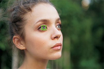 瞳だけにオートフォーカスする「瞳AF」機能を搭載。顔が斜めを向いているときでも高い精度で瞳を検出でき、フルサイズの浅い被写界深度でも瞳への緻密(ちみつ)なピント合わせを実現します。また、合焦すると、合焦エリアが一定時間表示されるため、意図通りにピントが合っているか事前に確認できます。「瞳AF」はカスタムキーに割り当てることで使用できるため、撮影シーンに応じて任意に起動できます。