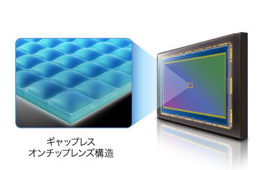 レンズから入射する光を最大限にイメージセンサーに取り込むため、隣接する画素間のギャップをなくす「ギャップレスオンチップレンズ構造」を採用。オンチップレンズ間のギャップを最小限に抑えることで集光効率を飛躍的に高めました。さらにオンチップレンズの位置を光の入射角に合わせて最適化し、入射角が厳しくなるイメージセンサー周縁部まで高画質を実現しています。