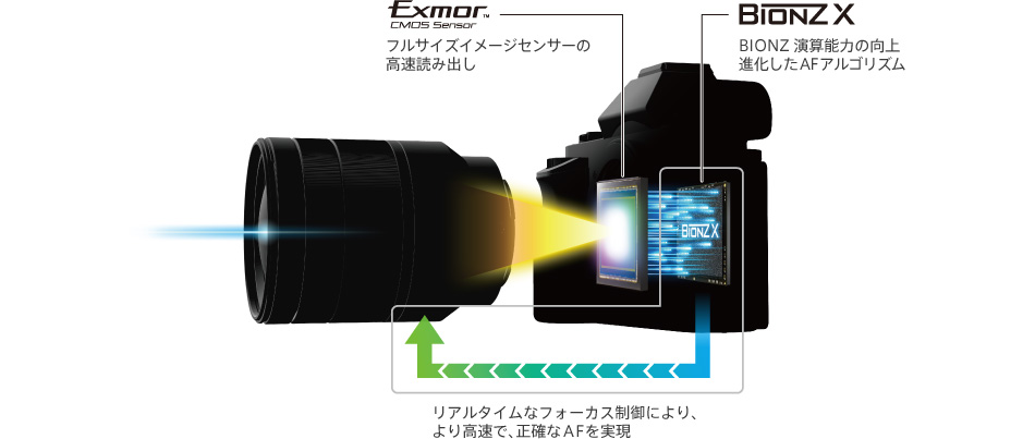 圧倒的な処理能力でリアルタイムに見たままの質感や高精細感を忠実に再現する、従来比約3倍(*)の高速処理性能を持つ新世代の高速画像処理エンジン「BIONZ X(ビオンズ エックス)」を搭載。