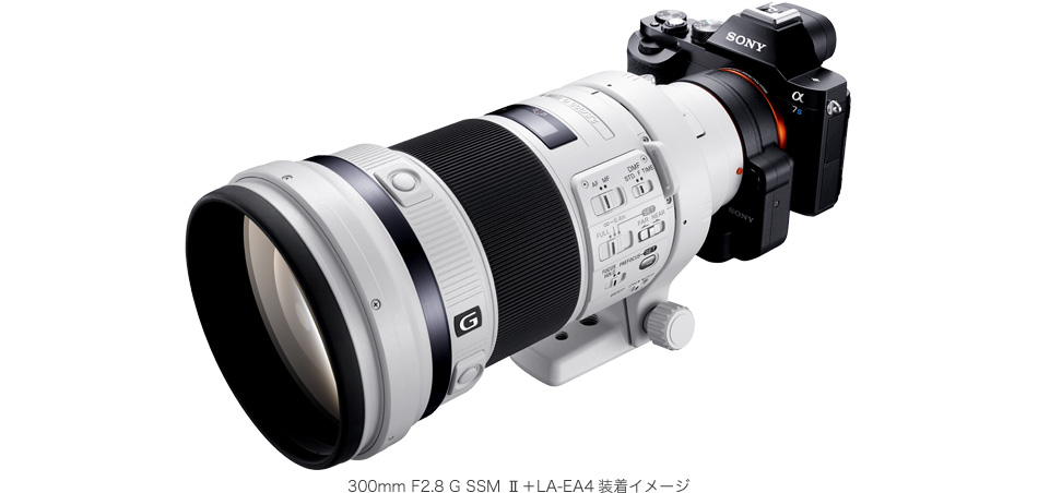 35mmフルサイズセンサー対応のマウントアダプターLA-EA4(別売)やLA-EA3(別売)を使えば、すべてのAマウントレンズ(*)をα7Sで使用できます。広角から望遠、単焦点レンズまで豊富なラインアップのAマウントレンズで、表現の幅がさらに広がります。