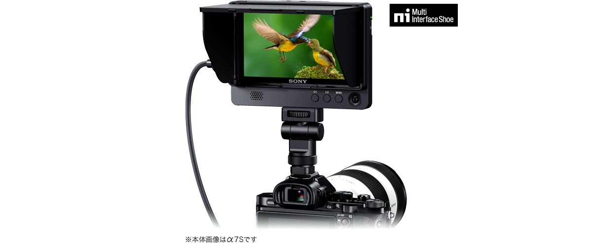 ピント位置を確実に見極められるフルHD(1920×1080)対応の5.0型LCDモニターをご用意。ピント合わせをアシストする拡大表示機能(3倍/6倍)やピーキング機能をはじめ、露出確認をアシストするFalse Color(フォールスカラー)機能やVideo Level maker(ビデオレベルマーカー)機能など、撮影をサポートする便利な機能を搭載しています。好みのアシスト機能は2つのカスタムボタンに登録可能。付属の液晶フードとARコーティング(反射防止膜)対応の液晶により屋外撮影でも活躍します。