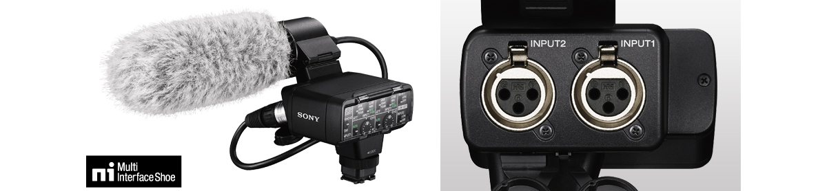 プロ用オーディオ機器の標準形式XLR端子に対応。別売のXLRアダプターキット(XLR-K2M)を接続すれば、高性能マイクやミキサーなどXLR端子機器からのライン入力が可能です。また、2chの入力をそれぞれ独立して設定でき、より本格的な動画撮影を実現します。