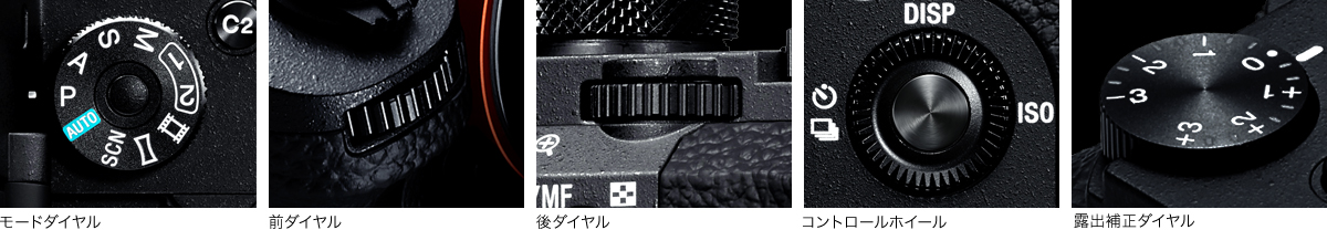 モードダイヤルやコントロールホイールはもちろん、前後2つのダイヤルと露出補正ダイヤルを搭載。グリップを握りながら操作しやすい場所に配置された各ダイヤルは、主要パラメーターを任意に割り合てることで瞬時に設定変更が可能。また、露出補正ダイヤルは-3EVから+3EVまで1/3ステップ毎に設定できるほか、±0設定時のみカスタムボタンに露出補正機能を割り当てることで-5EVから+5EVまでの設定も可能になり、撮影表現の幅を広げることができます。