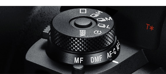 上段は「1枚撮影」や「連続撮影」などのドライブモード、下段は「シングルAF(AF-S)」や「コンティニュアスAF(AF-C)」などのフォーカスモードを切り替えられるための、上下2段に分かれたダイヤルを装備。双方のダイヤルにロック機構が付いているため、撮影中の意図しないモード変更や、ダイヤルの連れ回りを防止します。