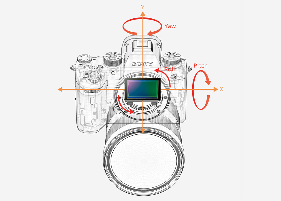 光学式5軸手ブレ補正機構をボディ内に搭載。α9では、新開発の手ブレ補正ユニットと高精度ジャイロセンサーにより、5.0段(*)の補正効果を実現しています。焦点距離が長くなるほど起こりやすい角度ブレ(Pitch/Yaw)に加え、マクロ撮影時などに顕著に現れるシフトブレ(X/Y)、夜景撮影時や動画撮影時などに目立つ回転ブレ(Roll)の5軸でブレを検出し補正します。また、静止画撮影中の手ブレ補正効果はライブビュー映像で確認できるため、望遠レンズで高速移動する被写体をフレーミングする際も快適です。マウントアダプター(LA-EA4/LA-EA3)を介したAマウントレンズ装着時など、さまざまなレンズによる撮影にも対応します。