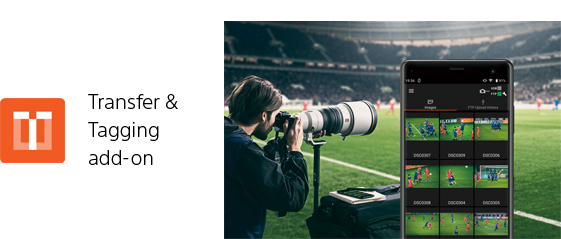 「Transfer & Tagging add-on(Ver. 1.1以降)」を使えば、よりスピーディーな納品ワークフローを実現します。スマートフォンを操作せず、カメラからスマートフォンに転送した音声メモ付き画像に、自動でテキスト情報を埋め込み、スマートフォンからFTPサーバーに自動アップロードも可能です。