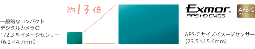 キレイな写真を撮るには、イメージセンサーの大きさが重要です。NEX-3Nの小さなボディには、一般的なコンパクトデジタルカメラの約13倍もある、APS-Cサイズの有効約1610万画素CMOSセンサーを搭載しています。この大きなイメージセンサーにより、髪の一本一本までキレイに描きだしたり、一眼ならではの美しいぼけ味を表現したり、暗いところでもノイズの少ないクリアな写真を撮影できます。