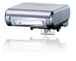 着脱可能なフラッシュユニットを付属。ボディに合わせたスタイリッシュな小型・軽量デザインで、持ち運びも簡単。必要なときにボディに装着して使用できます。フラッシュを発光させたいときには発光部を上げるだけで電源オン、下げると電源オフになります。16mmレンズの画角をカバーし、発光量はガイドナンバー7です。