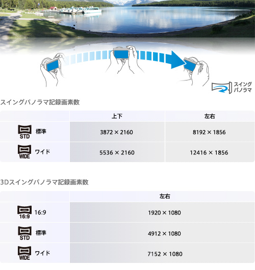 カメラ一振りでパノラマ写真ができる、「スイングパノラマ」機能