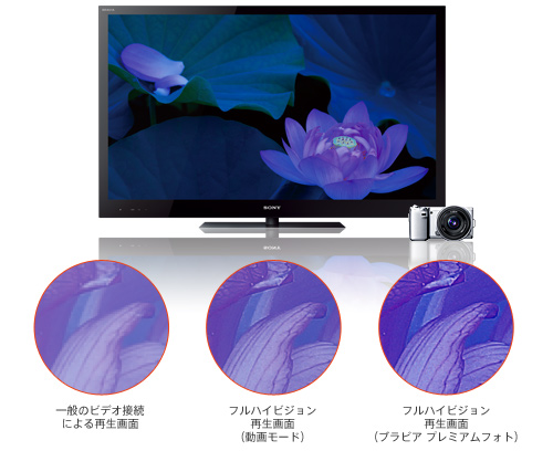 撮った写真を「ブラビア プレミアムフォト」対応の〈ブラビア〉に映し出せば、写真本来の持つ自然な階調表現、豊かな色彩を余すところなくフルハイビジョンの高画質で再現できます。