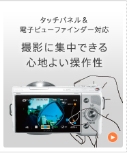 * レンズ交換式デジタルカメラにおいて。CIPA測定条件 標準ズームレンズE 18-55mm F3.5-5.6 OSS装着時、シャッターボタンを押しこんでから露光開始までの時間。2011年8月広報発表時点、ソニー調べ