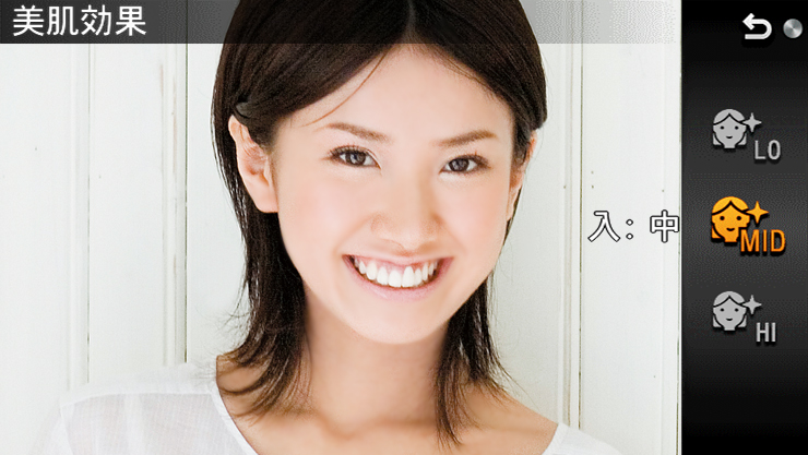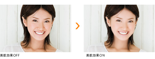 顔のシワやくすみを自動で美肌にする「美肌効果」モードを搭載。目や口元のシャープ感を保ったまま、顔の小ジワやくすみ感を軽減して美肌を表現します。最大8人まで検出でき、記念撮影にも便利。美肌効果は、低・中・高の3段階から選べ、P・A・S・Mモード時やマニュアルフォーカス時でも使用できます。