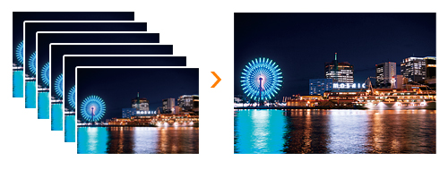 「手持ち夜景」モード同様に、高速連写した画像を重ね合わせて、ノイズを低減する「人物ブレ軽減」モードを搭載。動いている人物と背景のそれぞれで重ね合わせ処理を行うため、手ブレと被写体ブレの両方を抑えた美しいポートレートを撮影できます。フラッシュは発光されないため、白とびすることなく、室内の照明だけで自然な表情が残せます。