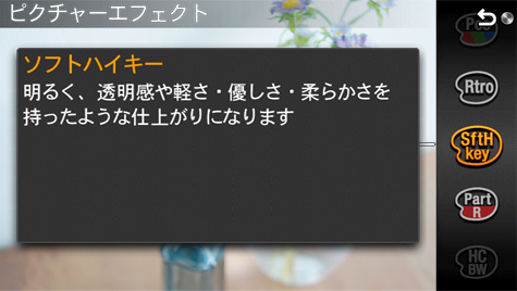※ 一部のエフェクトはライブビュー画および動画撮影時に反映されません